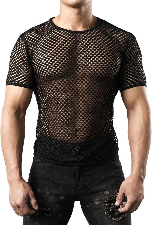 Black Mesh Fishnet Fitted Short Sleeve Muscle Top