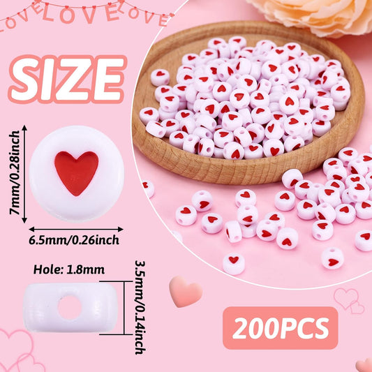200Piece 7MM White Mini Red Love Heart Pony Beads for Kandi Jewelry Making